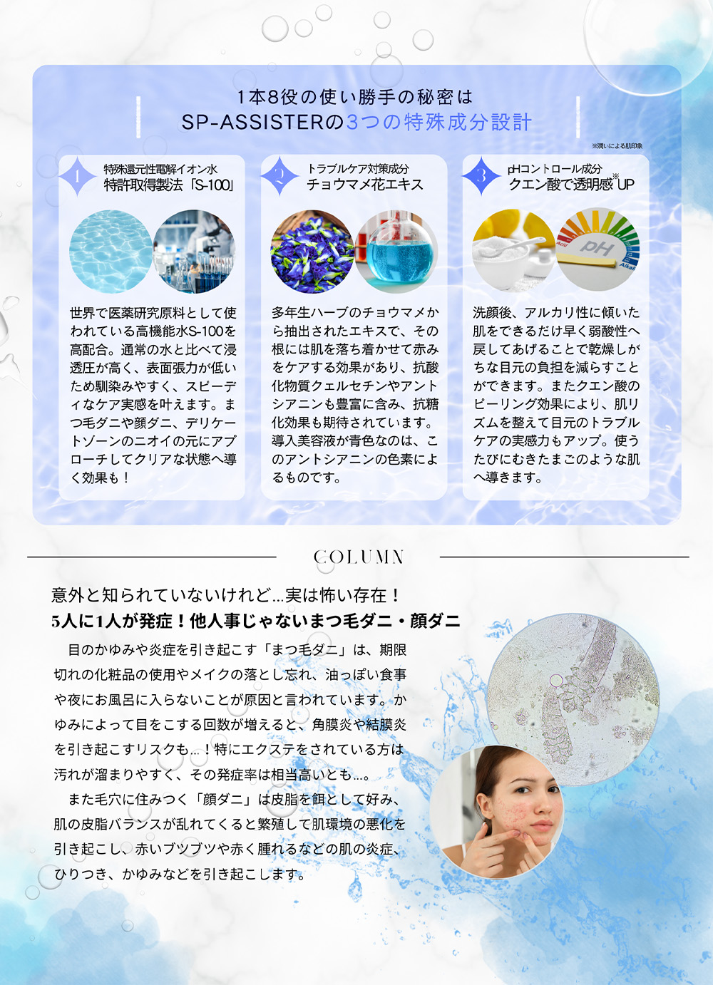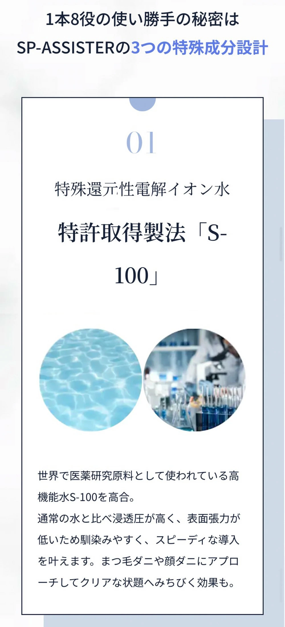 1本8役の使い勝手の秘密は、SP-ASSISTERの3つの特殊成分設計