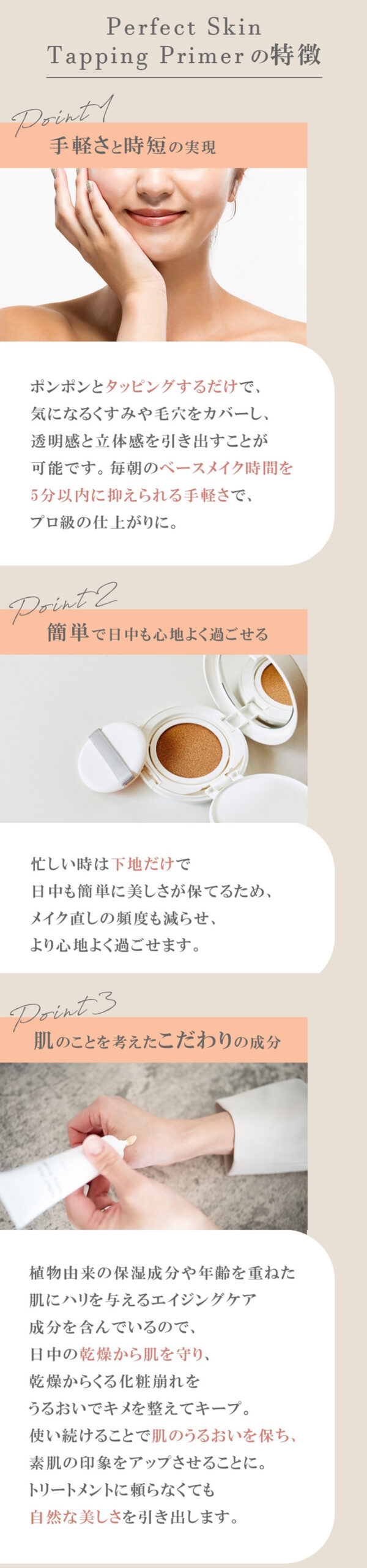 たった30秒のタッピングで簡単に美肌ベースメイクになれる化粧下地
