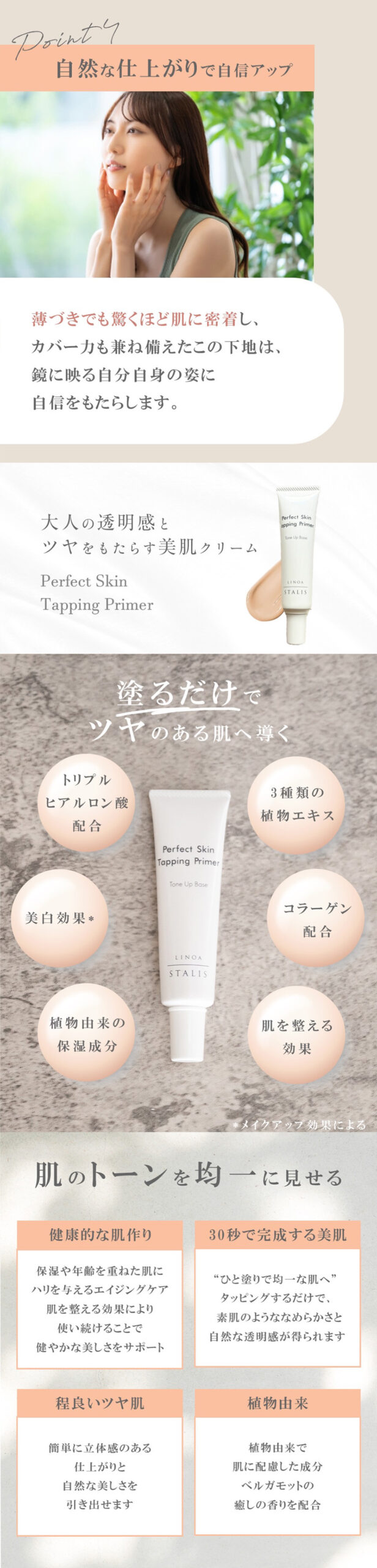 気になるくすみや毛穴をカバーして、透明感のある肌に促します。